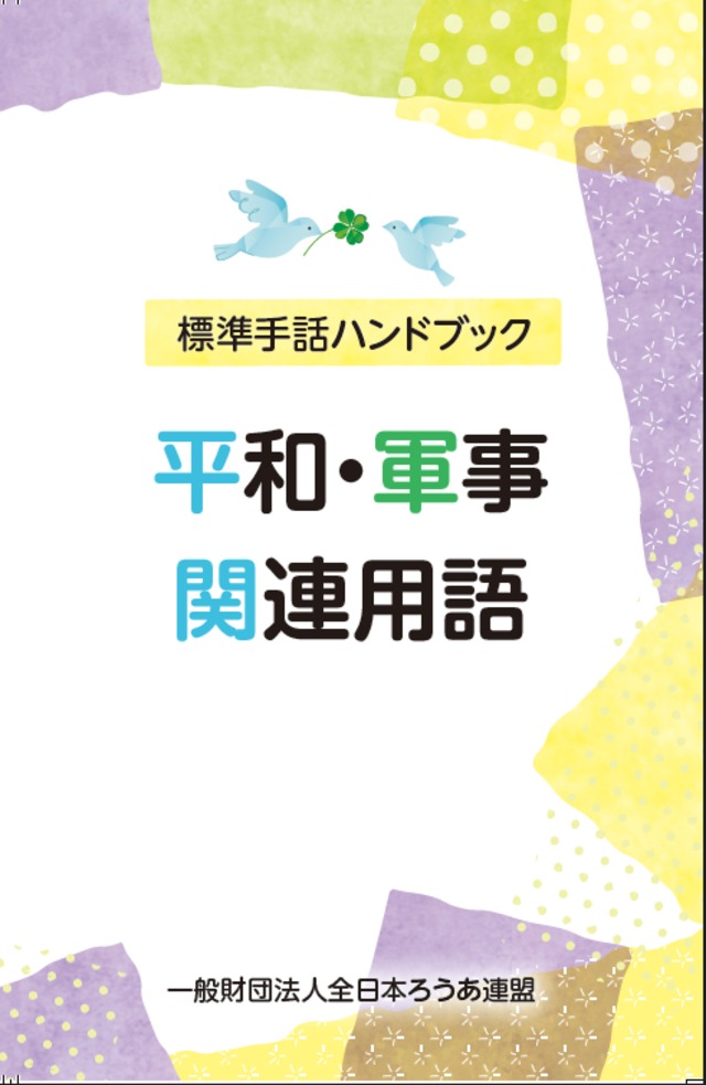 『平和・軍事関連用語 標準手話ハンドブック』 昨年3月に発行した「新型コロナウイルス感染症関連用語」の標準手話ハンドブックの第二弾です。 第一弾よりも単語数を多くし、「ロシア」「ウクライナ」「ポーランド」等の国名手話も加え編集しました。 同じような日本語の意味でも、手話表現が違う単語を掲載していますので、 非常に便利な一冊です。 変形サイズ (縦175ミリ、横112ミリ 約60ページ) 持ち運びにも便利です